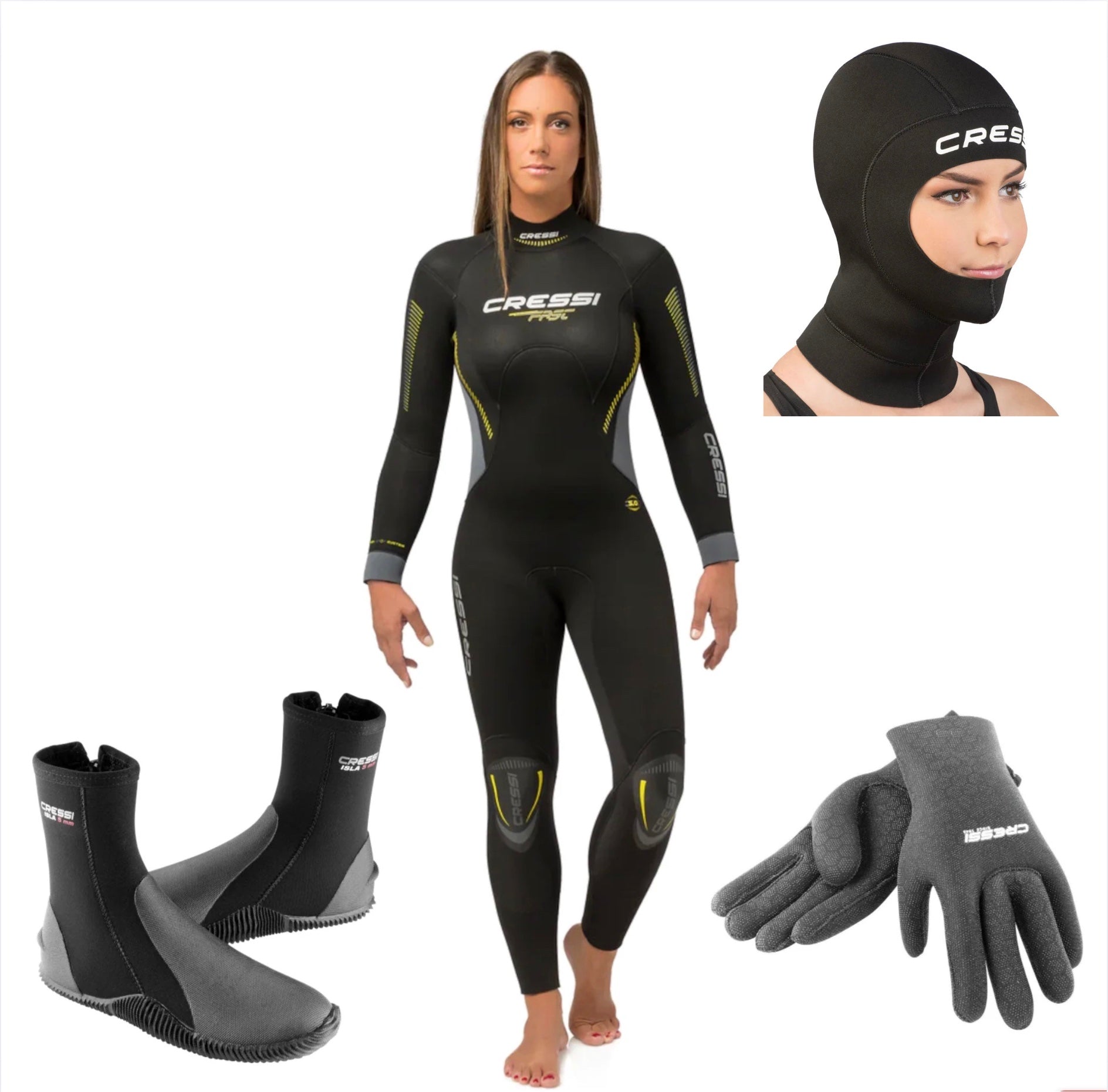 Designed for cold-water comfort and performance, this complete Cressi package offers warmth, flexibility, and durability for women who dive in cooler conditions. Ideal for scuba diving, snorkeling, and other water sports, it combines premium materials with proven Italian craftsmanship.